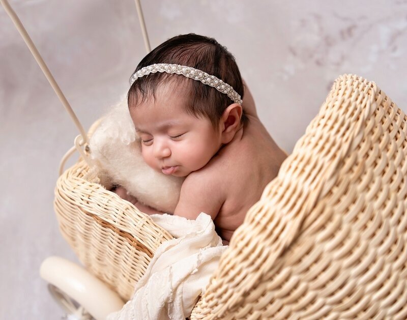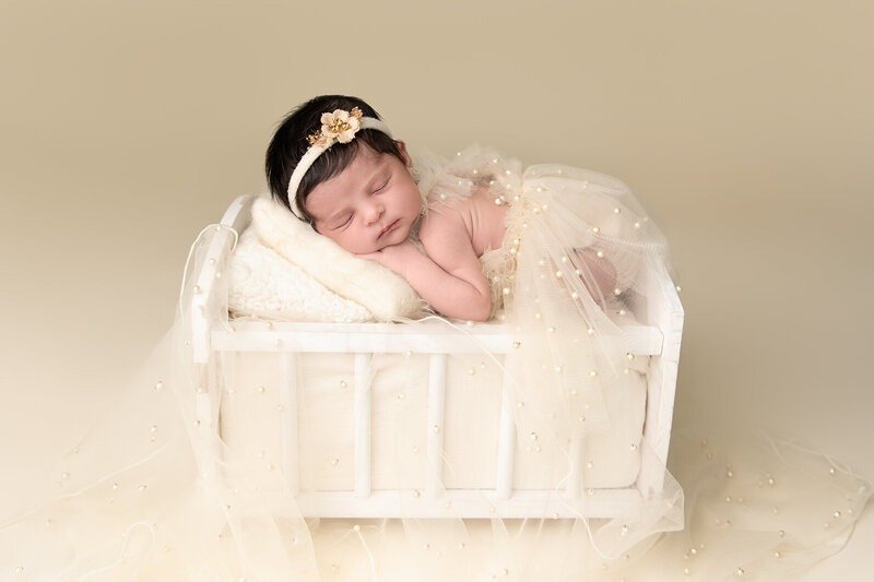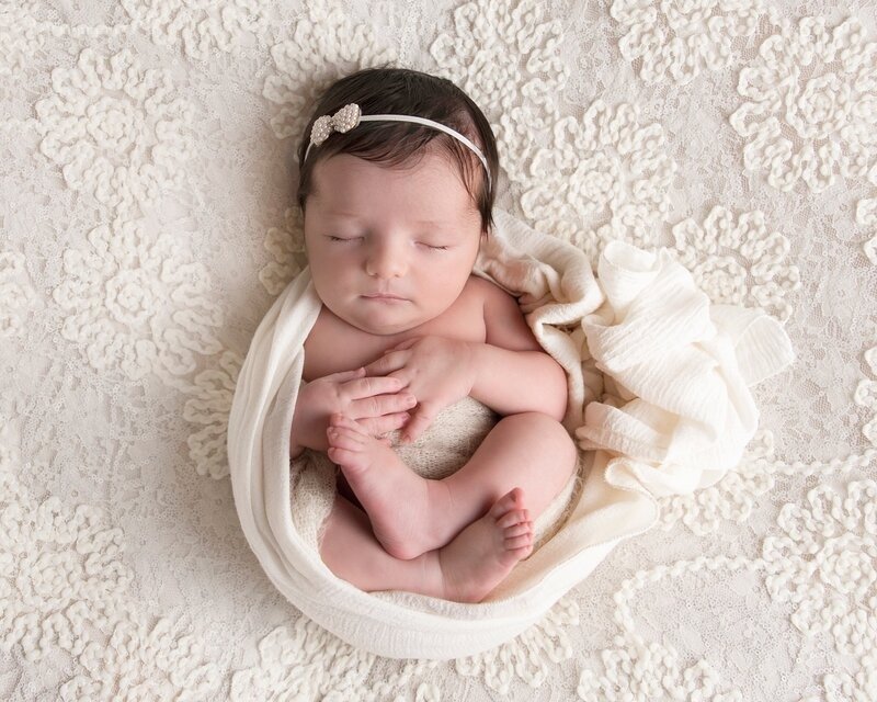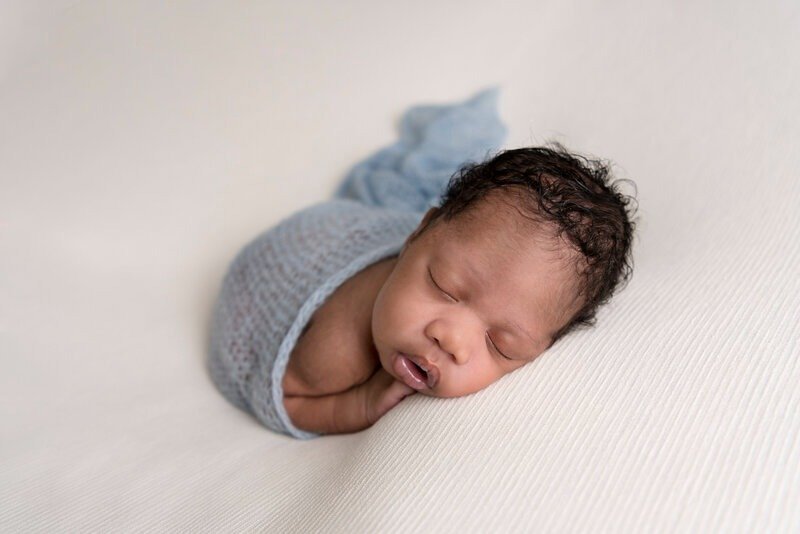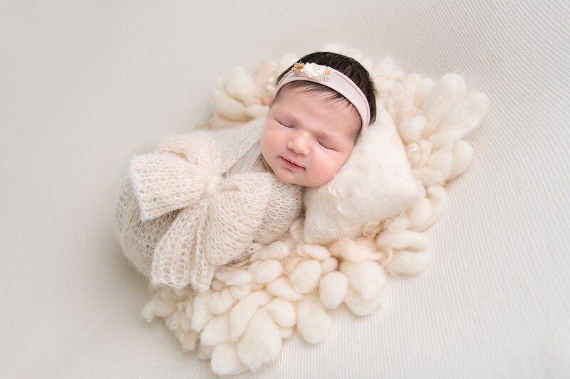 Newborn sessions are thoughtfully guided and designed to create refined portraits in a calm studio environment."